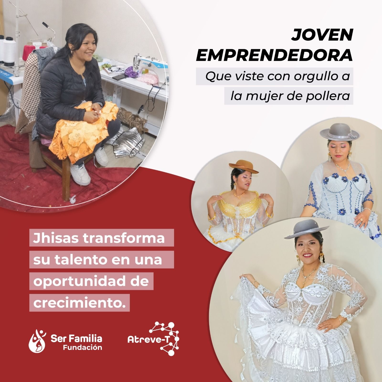 Jhisas convierte su pasión por el diseño de una iniciativa productiva, confeccionando polleras y corsets que realzan la identidad de la mujer de pollera.