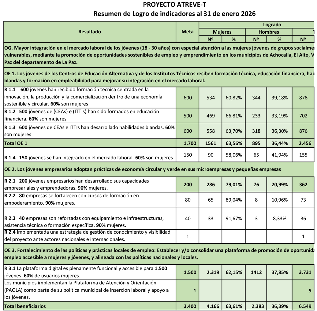 de empleo y emprendimiento en los municipios de Achocalla, El Alto, Viacha y
